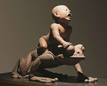 董书兵出生于大西北,曾就读于西安美院附中、中央工艺美院和中央美院,现任清华大学美术学院雕塑系副主任。婴儿系列的创作冲动来自董书兵女儿的出生。此次展览的策展人北人在介绍文章中说,2003年董书兵初为人父,所谓“回眸时看小于菟”,他被女儿的哭声逗笑了。襁褓中的婴儿,清脆的啼哭,一声一声的唤醒了董书兵内心深处那块柔软的地方,从此之后他开始了以婴儿为主题的系列创作。